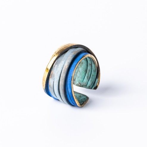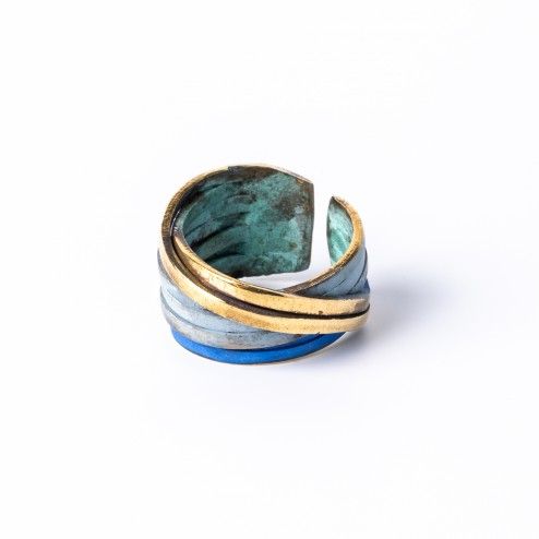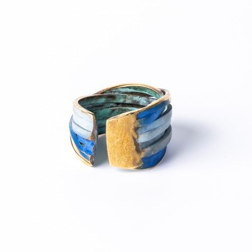 Anell obert de bronze dos blaus de la col.lecció Efímera