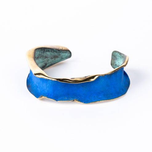 Pulsera en bronce dorado y color azul