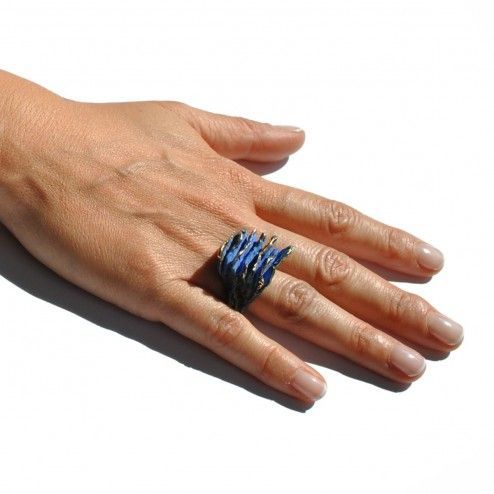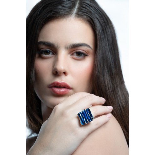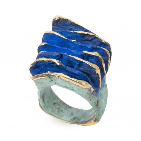 Bague en bronze de la collection "Arpillera", inspirée par les tissus médiévaux, pensé pour voyager dans le temps. Bijou d'auteur réalisé intégralement à Barcelone. Made in Barcelona. Disponible en bronze vert, bleu et aussi en argent